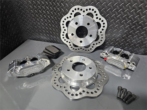 Weight, speed and use of a car plays a significant role in determining the requirements of a brake system. One brake kit is just one portion of a brake system and may require other portions of the system to be changed in order to function properly. Please call us with any questions you may have about achieving the correct system for your vehicle.