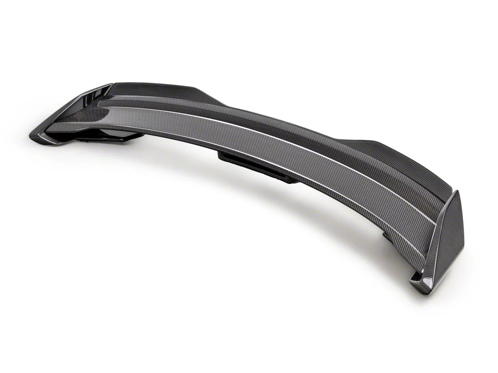 The Ford Performance Rear Spoiler With Gurney Flap; Gloss Carbon Fiber fits 2024-2026 Mustang GT Fastback, Dark Horse models.