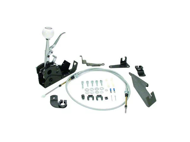 The Hurst Quarter Stick Race Automatic Shifter is designed for automatic transmissions and features a reverse pattern with reverse lockout. It is perfect for racing enthusiasts looking for quick and reliable gear shifts. Its cable-operated system ensures precise control and responsiveness.