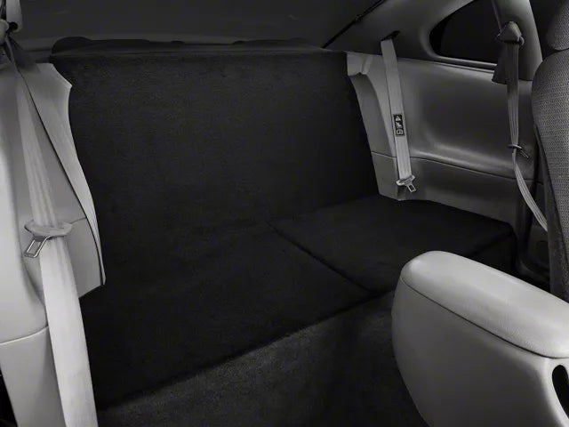 This black carpeted Rear Seat Delete Kit is designed to fit all 1994-2004 Mustang Coupes, including the V6, GT, Bullitt, Mach 1 and Cobra models. Not compatible with convertibles.