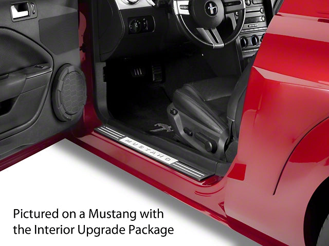 This pair of Chrome Door Sill Trim inserts are design to fit 2005 to 2009 Mustangs. The trim inserts will not fit on Mustangs equipped with a metal door sill plate.