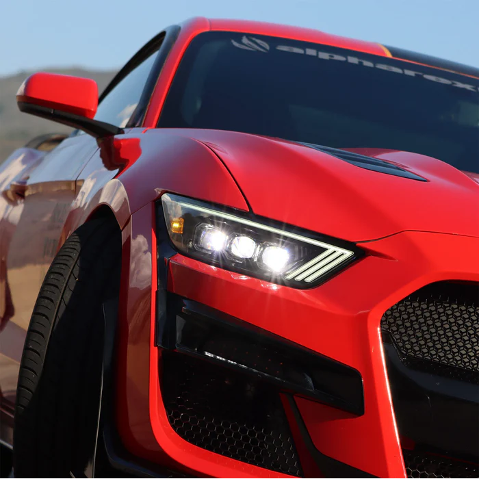 We have integrated the iconic 6th Gen Mustang S550 “tribar” DRL into our Ford Mustang NOVA-Series headlights, using three AlphaRex signature 3D ice-cube projector lenses. These tribar LED lights can be configured for either white (default) or amber output for the DRL, and feature a sequential turn signal in amber. Additionally, the LED tube includes an activation light that provides a lighting sequence when you unlock and lock your 6th gen Mustang S550.