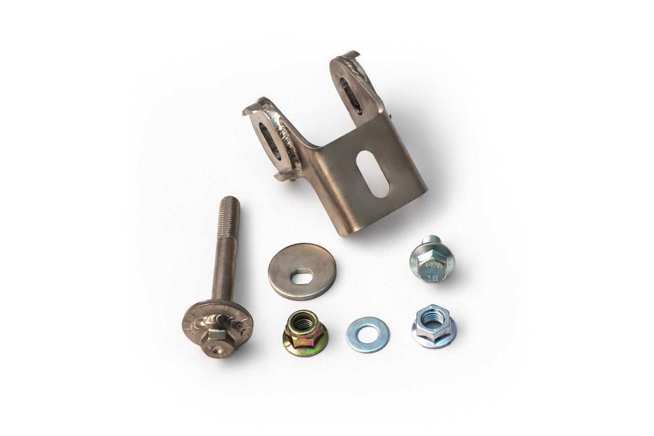 Looking for a simple and cost-effective way to gain some much-needed camber adjustment on your lowered 2015+ Ford Mustang? Look no further than Steeda's Rear Camber Adjustment Bracket. While the factory gives you some camber adjustment, it's just not the easiest to adjust and set. This is even more difficult on a lowered car. Our Rear Camber Adjustment Kit bolts into the factory camber adjustment location and makes adjusting and setting your camber a breeze! Notches stamped into the adjusting bolt allow you to save your previous camber setting for track outings saving your rear tires and lowering your lap times. Our kit works with stock, Steeda Non-Adjustable, and Steeda Adjustable Camber Arms to fit your needs. Simple installation, reliable parts, and quality work is the Steeda way.