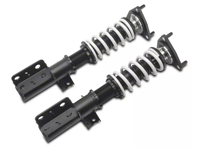Not only will SR Performance Sport Coil Overs improve the handling of your 2015-2025 Mustang, but they will also improve its overall appearance. This SR Performance Sport Coil Over Kit is ride height adjustable allowing you to lower your Mustang anywhere from 1 inch to 3 inch (front and rear) to eliminate that nasty tire to fender gap for a more aggressive street stance.