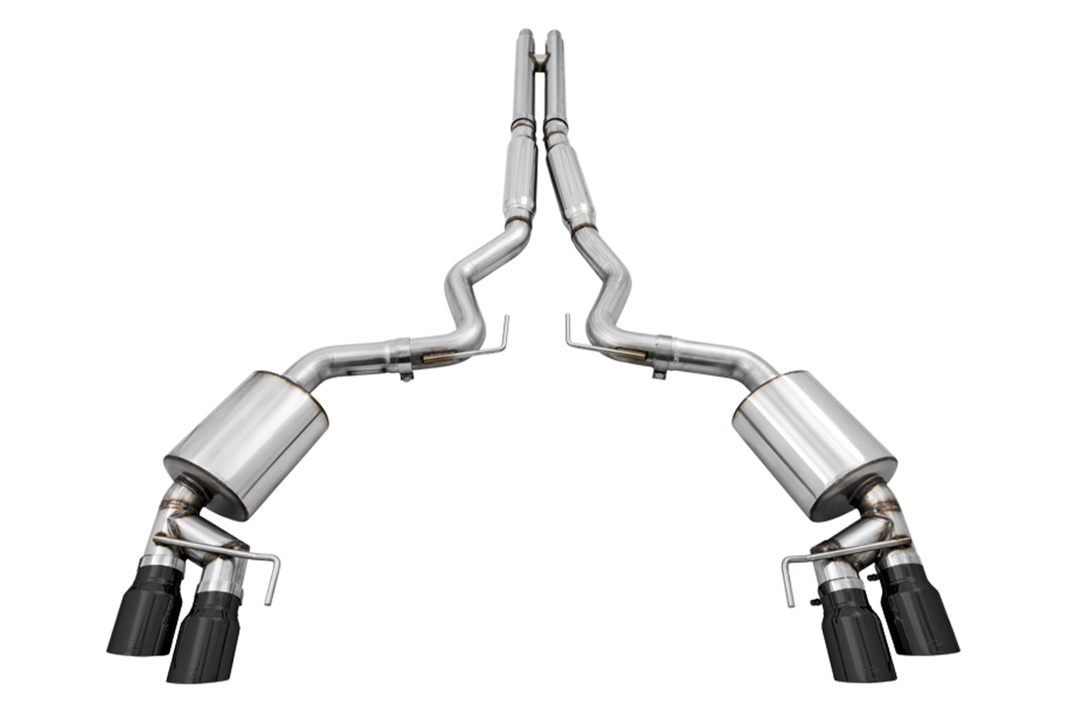 The AWE Touring Edition Cat-Back Exhaust with Diamond Black Tips is designed to accommodate all 2018-2023 Ford Mustang GT Fastback models without active exhaust.