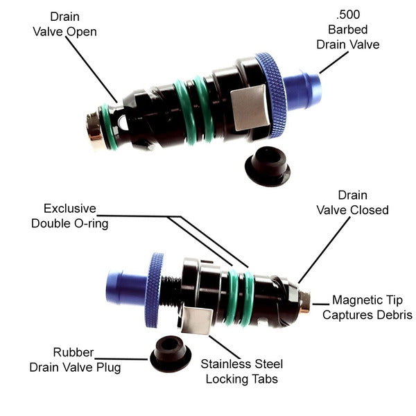 The factory plastic drain plugs that are used on the 18-21 Mustang GT, 16-21 GT350, 15-21 F150 2.7 17-21 F150 3.5 & 17-21 F150 5.0 are prone to breaking. Now you can replace it with this billet aluminum drain plug with drain valve from UPR. Tough Billet aluminum construction and designed to work with the factory plastic oil pan. Features stainless hardware, Viton O-ring, drain valve and a magnetic tip. No longer will you have to buy spare drain plugs when you change your oil when you can have a billet plug as it should have from the factory.