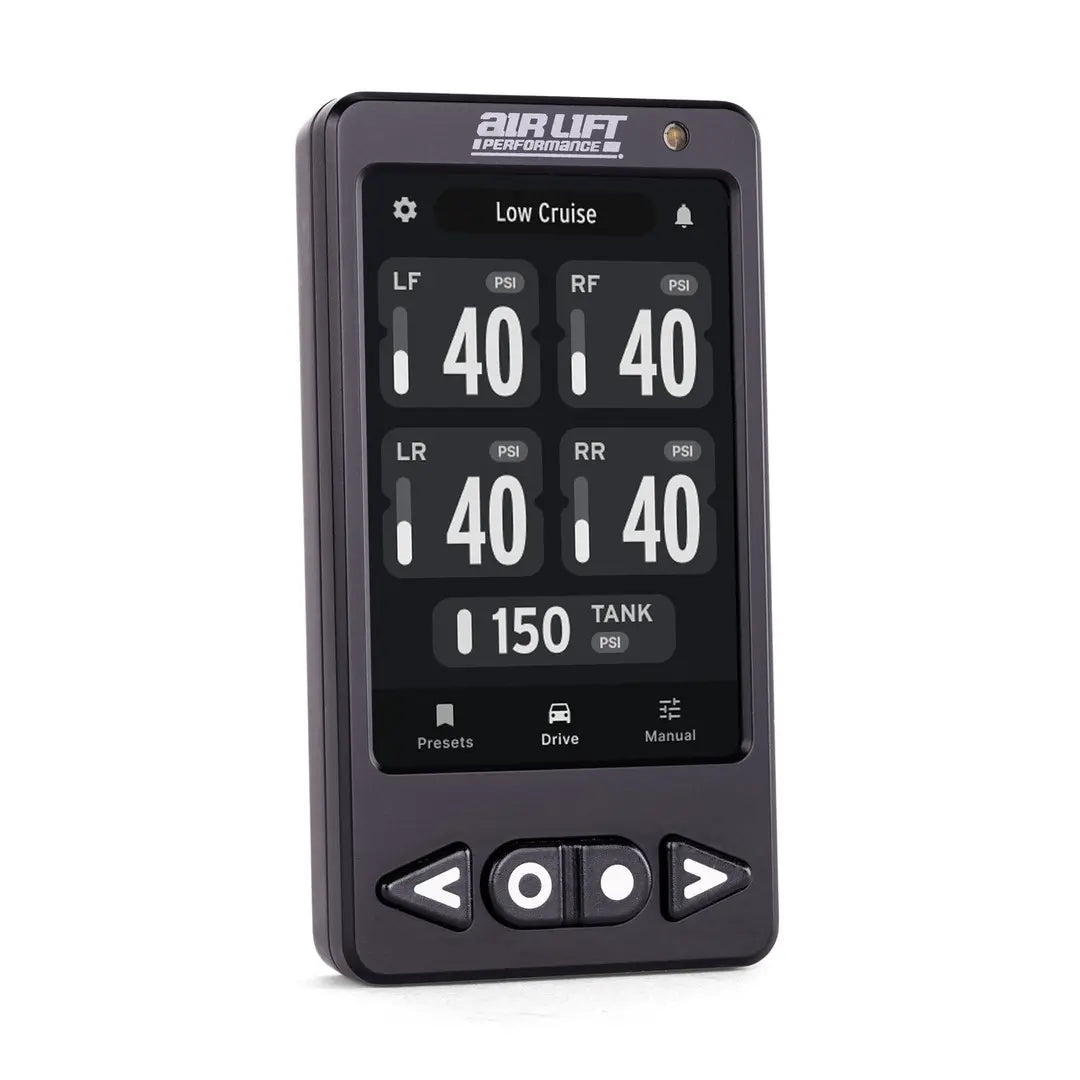 The ALP4 air management system redefines what’s possible for air suspension control, combining cutting-edge hardware with smarter, more seamless functionality. This system features a compact, all-in-one manifold, which houses the ECU, solenoids, and pressure sensors, crafted from anodized black billet aluminum for durability and a sleek, show-ready appearance. Paired with a full-color touchscreen controller framed in anodized aluminum and equipped with four tactile physical buttons, this system offers immediate control for your presets, 4-corner manual control, axle adjustments, full air-out and other adjustable functions. With mobile app integration, ALP4 allows you to use and fine-tune your setup from anywhere, ensuring ultimate control.
