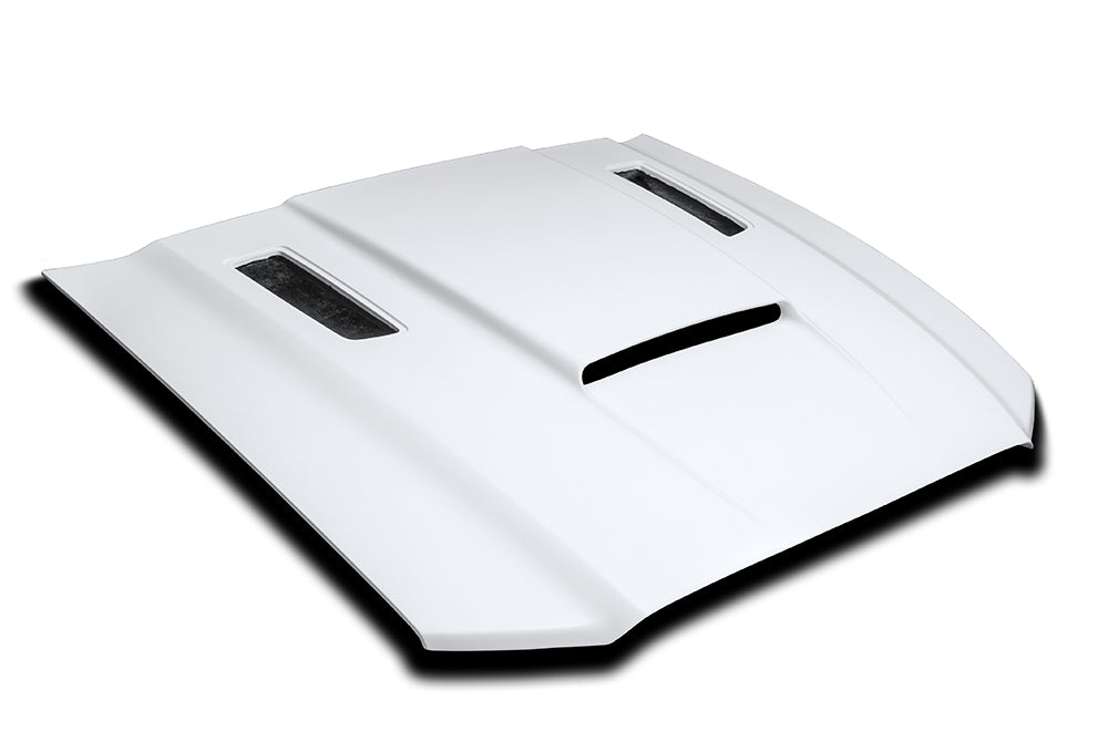 The 2013-2014 Mustang GT hood features rear-screened air vents to extract heat as well as a fully-finished underside liner for extra strength and Constructed from premium hand laid fiberglass.