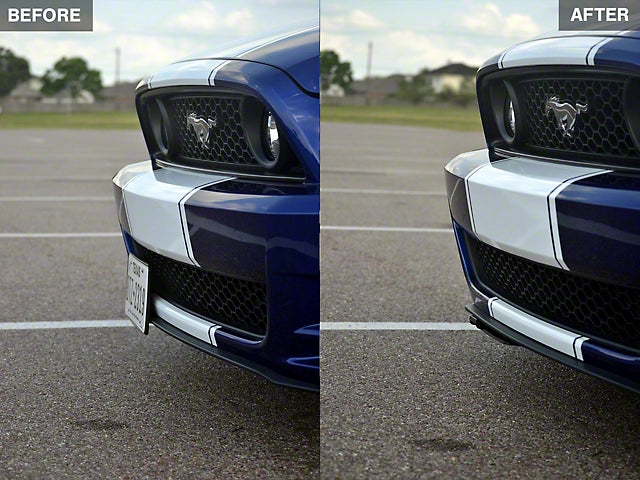 This is a universal license plate holder that will require drilling into the factory bumper for installation. It is not compatible with the CS/Boss Front Fascia with Splitter, Roush Body Kit, 2003-2004 Cobra Chin Spoiler or Mach 1 Chin Spoilers. It may not fit with other aftermarket chin spoilers as well.